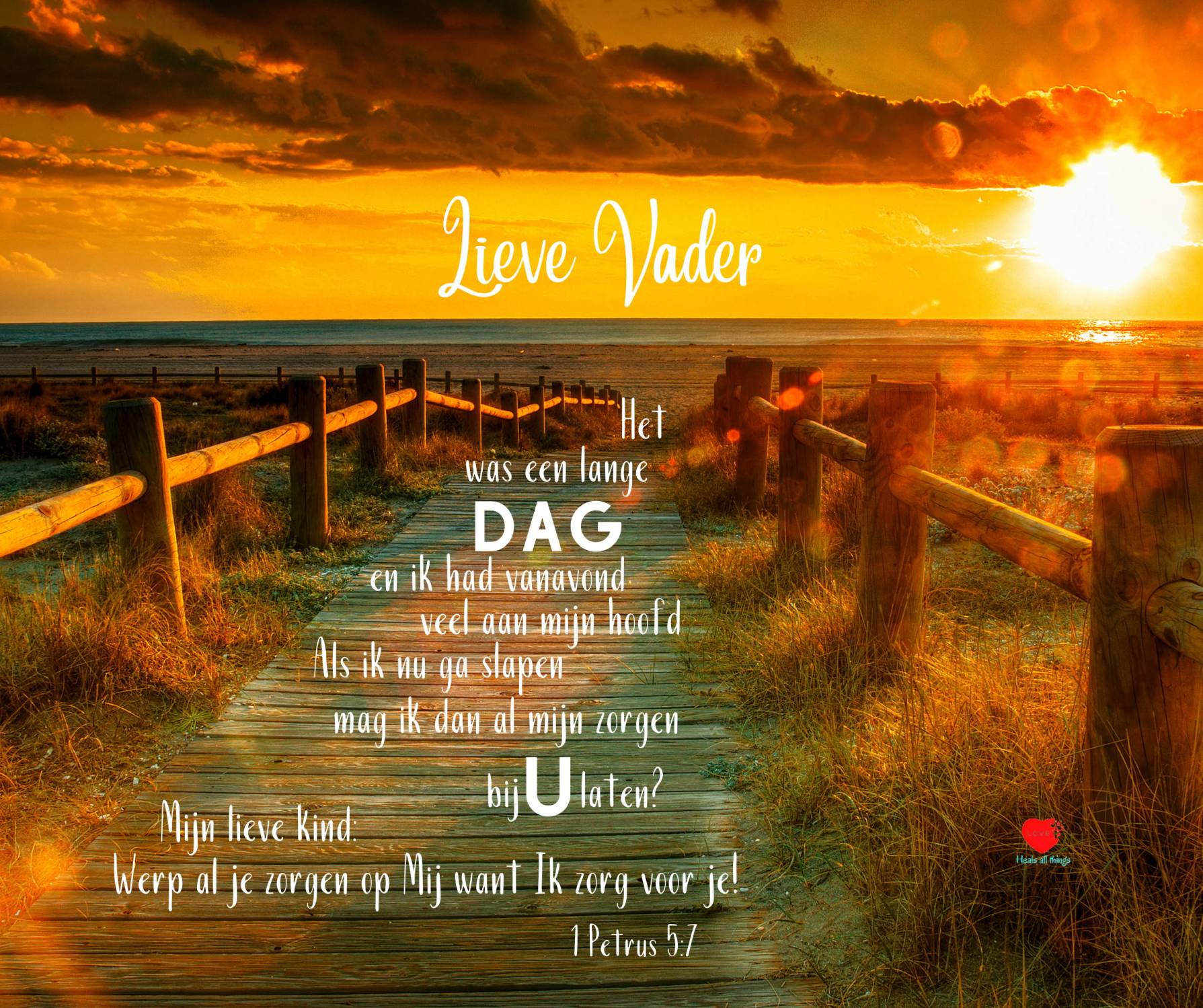 Gebed om rust.. On 11 oktober 202111 oktober 2021 door Love Heals All ThingsinCreatieve christelijke plaatjes, Pinterest Lieve Vader, het was een lange dag, en ik had vanavond veel aan mijn hoofd. Als ik nu ga slapen mag ik dan al mijn zorgen bij U laten? Mijn lieve kind: Werp al je zorgen op Mij want Ik zorg voor je! 1 Petrus 5:7 Voel je vrij om te delen! Delen=Getuigen Klik om te delen op Facebook (Opent in een nieuw venster) Facebook Klik om op Pinterest te delen (Opent in een nieuw venster) Pinterest Klik om te delen op WhatsApp (Opent in een nieuw venster) WhatsApp Klik om dit te e-mailen naar een vriend (Opent in een nieuw venster) E-mail Klik om te delen op Telegram (Opent in een nieuw venster) Telegram Klik om af te drukken (Opent in een nieuw venster) Print Vind-ik-leuk Aan het laden... Gerelateerd