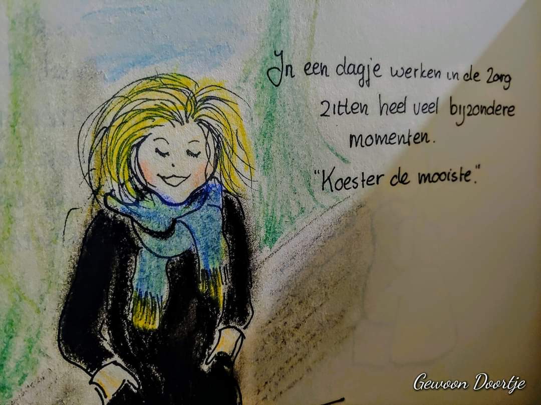 Ik kon niet anders dan mee gaan in haar beleving en zei dat dat helemaal goed kwam… en graag bleef slapen.. ik glimlachte.. en dacht.. heerlijk dit… ze denkt echt dat ik bij haar op visite ben..