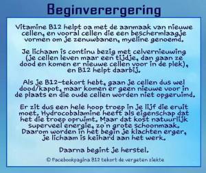 Als het lichaam aanvulling krijgt door middel van injecties kan het herstel beginnen alleen heeft het heel veel tijd nodig om te herstellen en ik merk dat ik nu na drie kwart jaar enig verbetering merk…wat ben ik hier blij om… het heeft mij heel wat bloed zweet en tranen gekost om die injecties eindelijk te krijgen… maar mijn inspanningen worden nu beloond…